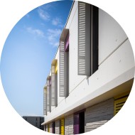 Pleins ou ajourés, en tôle perforée ou habillés en bois, à lames fixes, sur rails, nos volets coulissants sont fabriqués sur-mesure en acier ou en aluminium. Finition couleur RAL au choix.