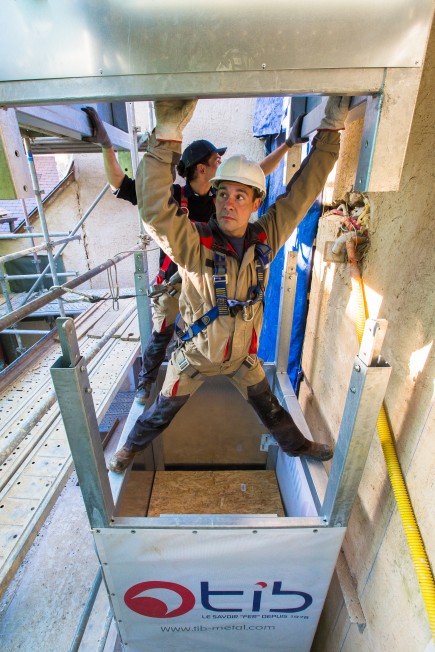 Certaines équipes sont habilitées et dédiées à l’activité développée depuis 40 ans auprès des ascensoristes et interviennent au quotidien en pose de pylônes, calfeutrement de faces palières, sécurisation des gaines d’ascenseurs, modernisation et rénovation de cabines d’ascenseurs du sol au plafond.